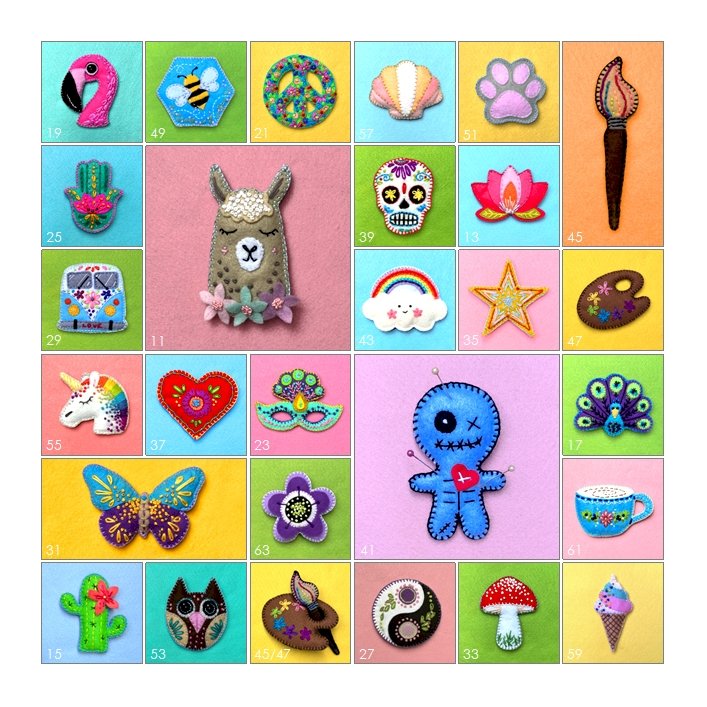 figurer af hobbyfilt. Bogen indeholder skabeloner til 27 forskellige