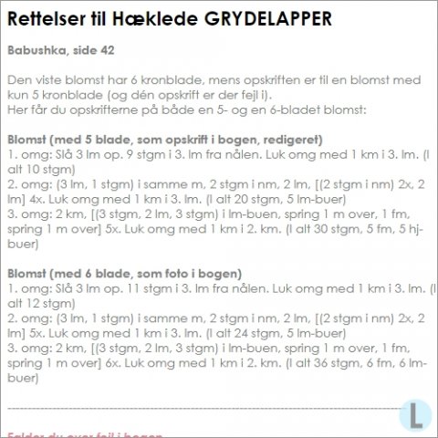 GRYDELAPPER: Rettelser