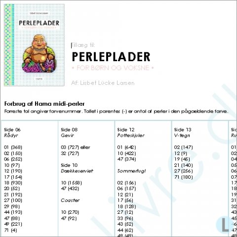 Download en PDF med en komplet oversigt over forbruget af Hama midi-perler til alle bogens motiver. (268 kb)